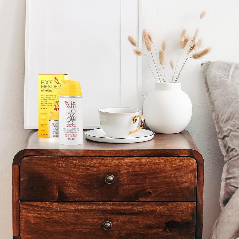 Footmender All in One is a specialized 100ml treatment designed to effectively heal dry feet, hard skin, calluses, corns, and cracked heels. Formulated for rapid action, it delivers noticeable improvement after the very first application, restoring skin softness and integrity. This expert solution targets troubled areas to promote healing and prevent further discomfort, making it an essential care product for maintaining healthy, smooth feet.